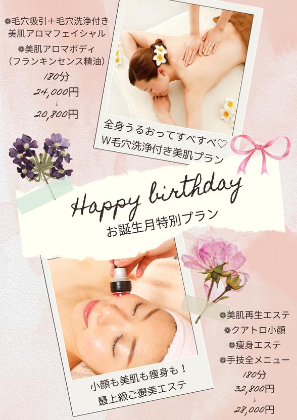 お誕生月には全身くまなくケアできる